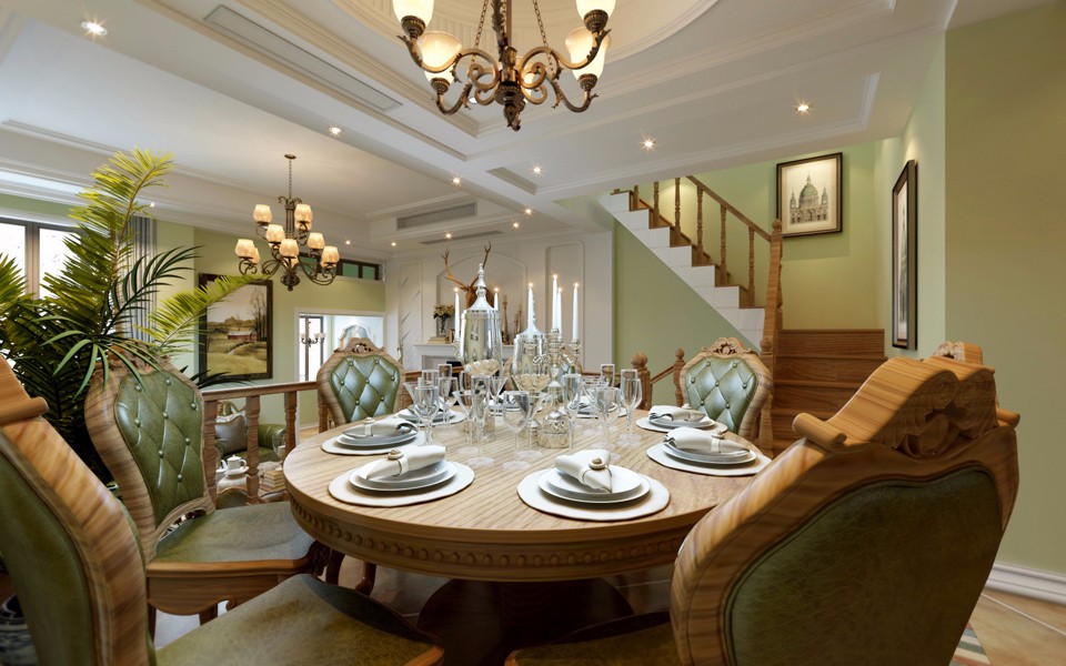 【華新山水居】美式躍層客餐廳效果圖